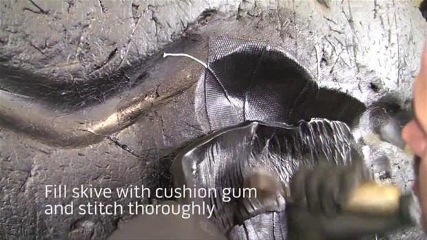 Dev lastiği böyle tamir etti