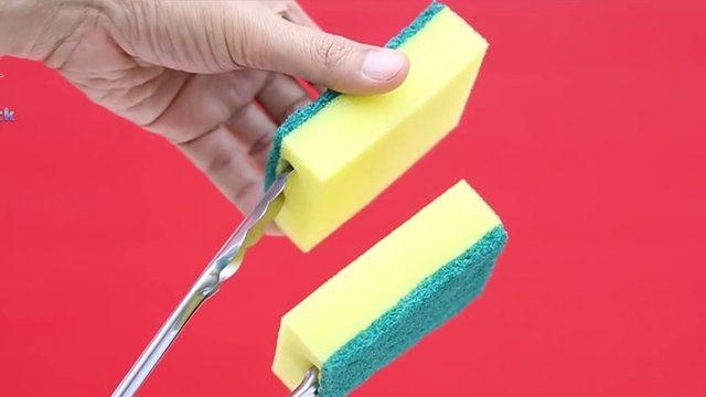 Süngeri şekildeki gibi takıp cam perdeliklerini kolaylıkla temizleyebilirsiniz.