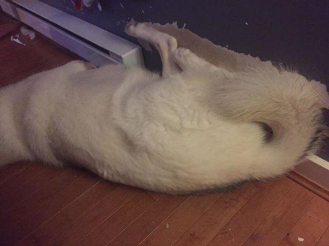Hep aynı yerde uyuduğu için duvarı aşındıran köpek...