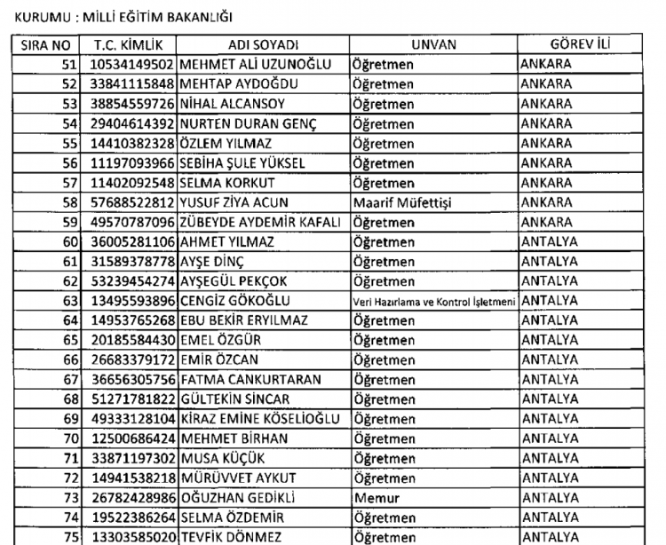 Yeni KHK ile iade ve ihraç edilenlerin tam listesi