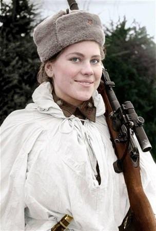 Sovyet ordusunun en iyi keskin nişancılarından biri olan Roza Georgiyevna Shanina (1943)