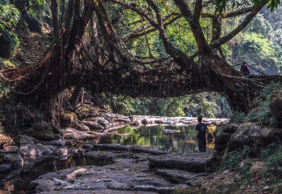 Meghalaya bölgesinin bu işte ustalaşmış sakinleri, 15 yıl boyunca dikkatli bir şekilde köklere yön vererek doğal köprüler meydana getirmeyi atalarından öğrenmiş.