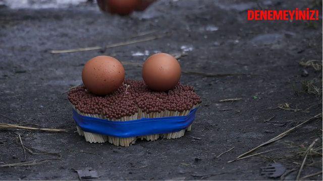 KİBRİT ÇÖPLERİ ÜZERİNDE YUMURTA