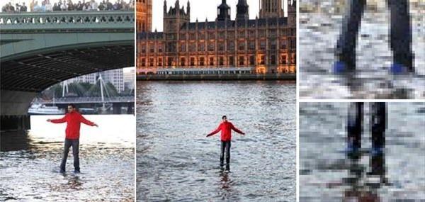 İllüzyonist Steven Frayne ingiltere parlamento binası önünden Thames nehrine girmiş ve nehrin ortasına kadar yürüyebilmiştir. Uzun süre bu numaranın nasıl yapıldığı meraklı takipçiler tarafından sorgulandı.