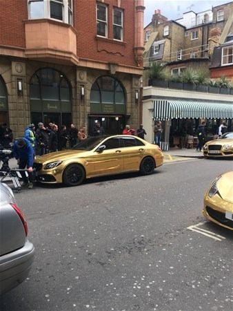 Adeta mağazanın önü altın kaplama arabalarla dolup taşıyor.