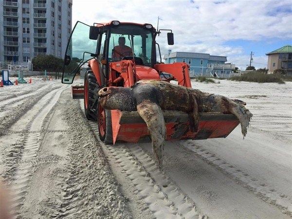 Amerika Birleşik Devletleri'nin Florida eyaletinde yer alan New Smyrna plajında ölü olarak bulunan bir deniz deri sırtlı deniz kaplumbağası...