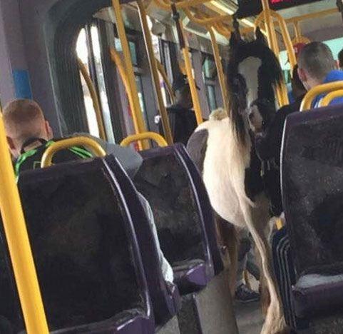 Tramvayda yolculuk eden bu atı görenler şok olsa da yapacak bir şey yok.