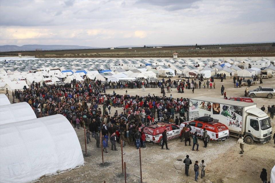 Suriye'de Rus uçaklarının Halep'in kuzeyindeki muhaliflerin denetiminde olan ilçe, belde ve köylere yönelik saldırıları sebebiyle 40 bin Suriyeli, Halep'in Azez ilçesi ile sınırdaki çadır kente geldi. (Arşiv)