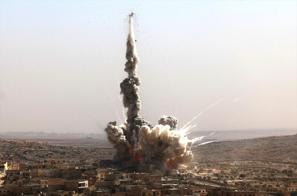 Rus ordusuna ait bir savaş uçağı, Halep'in batısındaki Daret İzza ilçesinde yerleşim yerini bombaladı. Rus uçağının bombaladığı yerden dumanlar yükseldi. (Arşiv)