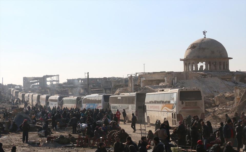 Beşşar Esed rejimi ordusu ve rejim yanlısı yabancı terörist grupların kuşatmasındaki Doğu Halep'te bulunan siviller Ameriyye bölgesindeki geçiş noktasında tahliye edilmeyi bekledi. (Arşiv)