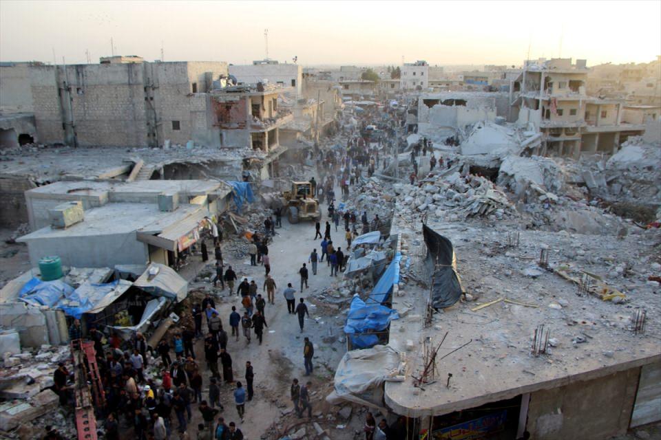 Halep'in batısındaki Etarib'de pazar yerine gerçekleştirilen hava saldırısında en az 43 kişinin yaşamını yitirdiği bildirildi. Saldırı sonrası bölgeye gelen sivil savunma ekipleri ve vatandaşlar, arama kurtarma çalışması başlattı. (Arşiv)