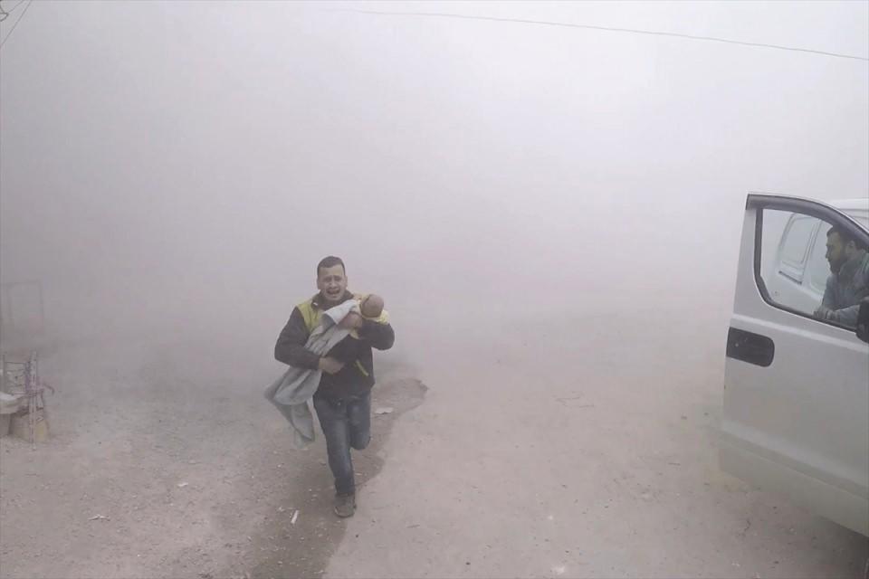 Suriye'nin Doğu Guta bölgesinde, Esed rejiminin saldırısında bebeğini kurtarırken görüntülenen Doğu Gutalı babanın yaşadığı dehşet, dikkatleri yeniden bölgeye çekti. Savaşın son dönemdeki en büyük trajedilerinin yaşandığı Doğu Guta’da Sivil Savunma (Beyaz Baretliler) görevlisi olarak çalışan Said el-Masri, rejimin çok sayıda noktayı vurmasıyla arama kurtarma çalışmalarına katıldı. Ancak bombardıman sırasında, 3 aylık bebeği İbrahim'in bulunduğu evin sokağı da vuruldu. Masri'nin, bebeği evin yıkıntılarından çıkarıp kucağına aldıktan sonra, toz bulutuyla kaplı sokaktan koşarak çıktığı anlar fotoğraf karelerine girdi. Tek çocuğunu hastaneye yetiştirme umuduyla çırpınan babanın yaşadığı dehşet ve umut yüzüne çarpıcı şekilde yansırken, yaşanan vahşet ise gözler önüne serildi. (Arşiv)