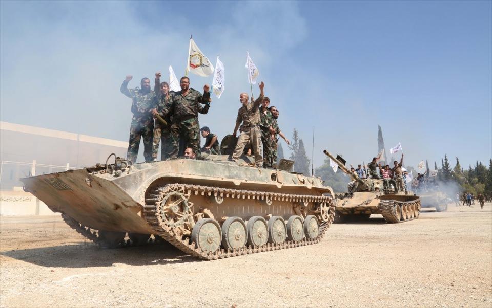 Suriye'de devam eden iç savaşta Halep'in kuzeyini ve merkezinin büyük bir bölümünü kontrol altına alan muhalif gruplardan Tevhid Tugayı ve Fetih Tugayı birleşme kararı aldı. Tevhid Tugayı ve Fetih Tugayı, Piyade Okulu'nda düzenlenen törende, iki grubun siyasi ve askeri anlamda ortak hareket edeceğini açıkladı. Törende iki muhalif grubun askerleri tanklar eşliğinde ortak gösteri yaptı. (Arşiv)