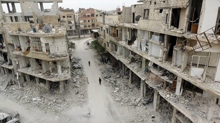 Doğu Guta'nın Arbin ilçesini drone ile görüntülendi
