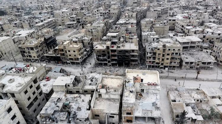Doğu Guta'nın Arbin ilçesini drone ile görüntülendi