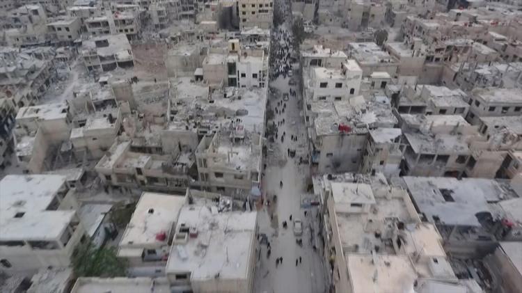 Doğu Guta'nın Arbin ilçesini drone ile görüntülendi