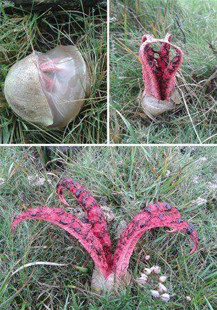 Bir canavar gibi görünen bu kırmızı şey, Clathrus Archeri bir tür mantar.