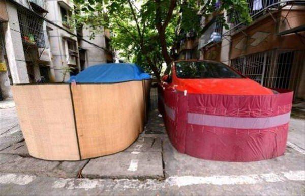Gece park ettikleri araçlarının aç kalan fareler tarafından zarara uğratılmasını önlemek için sürücüler çareyi bu şekilde bir önlem almakta bulmuş.