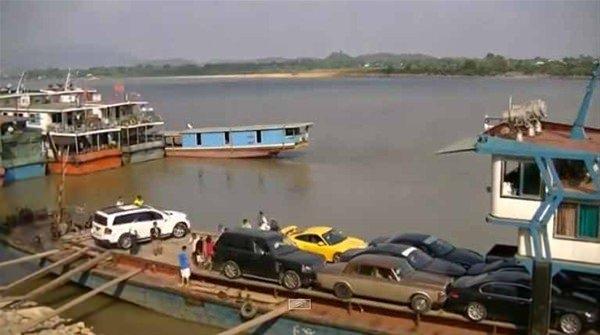 Lüks otomobiller Çin'de feribot benzeri bir deniz aracıyla böyle taşınıyor.