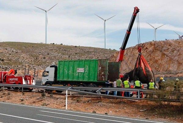 Yaralı filler ise, olay yerine getirilen vinçle otoyoldan alındı.
