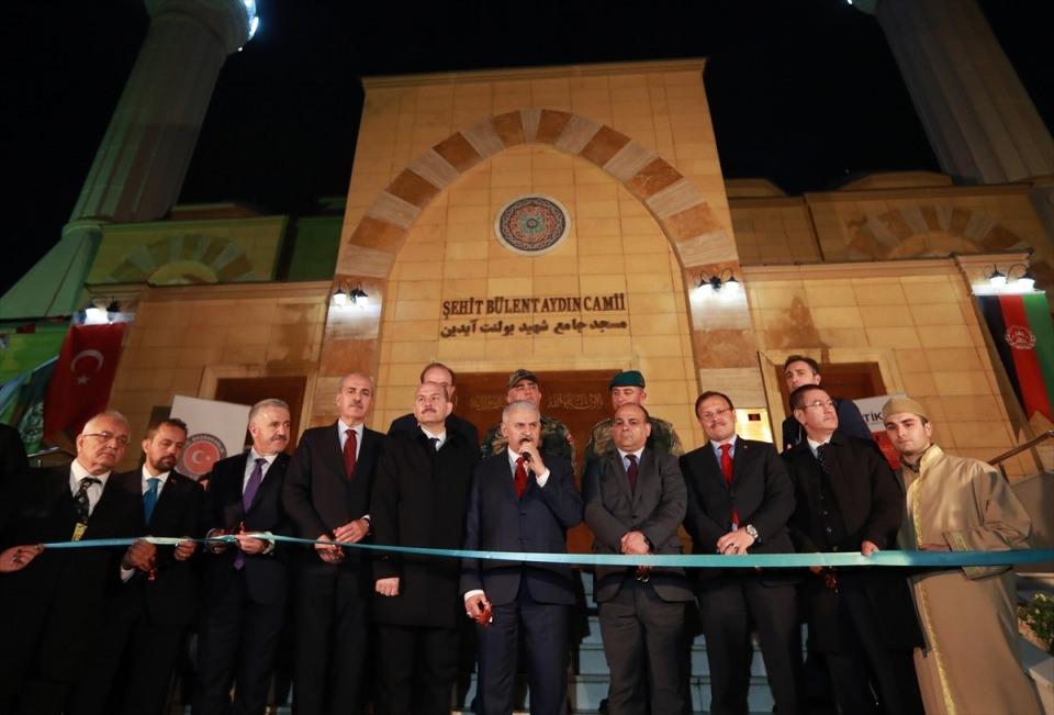 Yıldırım, daha sonra Başbakan Yardımcısı Hakan Çavuşoğlu, İçişleri Bakanı Süleyman Soylu, Kültür ve Turizm Bakanı Numan Kurtulmuş, Milli Savunma Bakanı Nurettin Canikli, Ulaştırma, Denizcilik ve Haberleşme Bakanı Ahmet Arslan, Afganistan İçişleri Bakanı Veyis Ahmet Bermek, TİKA Başkanı Serdar Çam, Hamid Karzai Uluslararası Havalimanı Komutanı Tuğgeneral Murat Selçuk Çol ve ATGK Komutanı Tuğgeneral Tayyar Aydın ile kurdele keserek caminin açılışını yaptı.