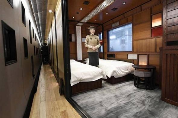 Trenin restoran vagonu. Yemekler Michelin yıldızlı şefler tarafından hazırlanıyor ve üniformalı garsonlar tarafından sunuluyor.