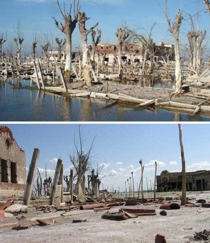 Şehrin ortasından geçen nehrin taşmasıyla boşaltılmış.