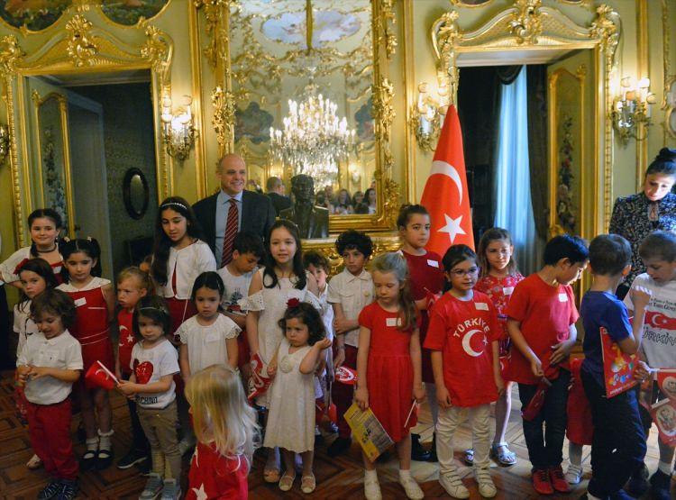 Türkiye'nin Roma Büyükelçiliğinde 23 Nisan Ulusal Egemenlik ve Çocuk Bayramı, Türk ailelerin çocuklarıyla katıldığı etkinlikle kutlandı. Çocuklar kutlamaya, Türk bayrağının kırmızı beyaz renklerindeki kıyafetleriyle geldi.