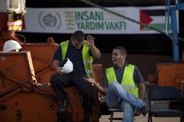 İsrail askerleri tarafından gemilerden indirilen malzeme, kamyonlara yüklenerek Aşdod'dan Gazze Şeridi ile sınırdaki Kerem Şalom geçiş noktasına getirildi, uluslararası örgütlerin aracılığıyla Gazze'ye aktarıldı.