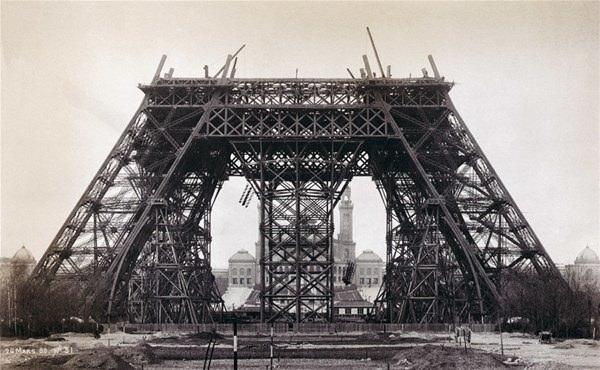 Eyfel Kulesi'nin çelik kirişleri zirveye doğru uzanırken, 1888.