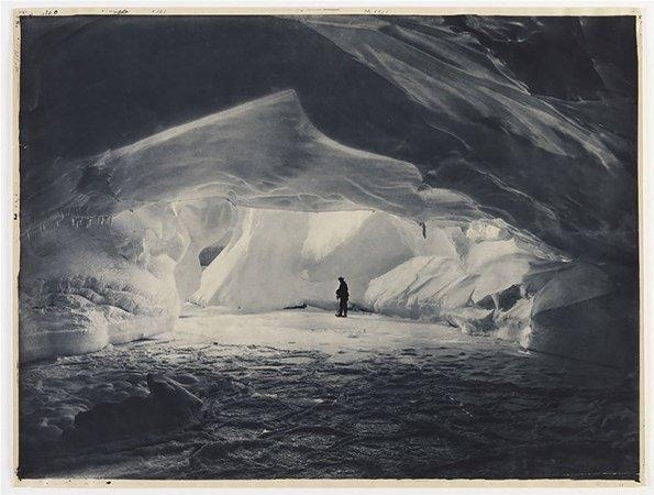Commonwealth Bay yakınındaki bir buz duvarında deniz tarafından oyulmuş mağara, 1912