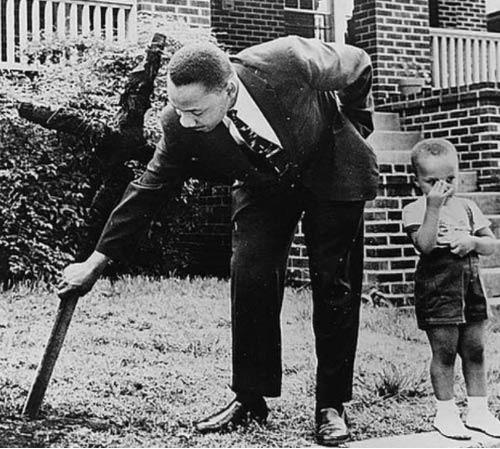 Martin Luther King Jr. ırkçılar tarafından gece bahçesine saplanıp yakılmış hacı yerinden sökerken.