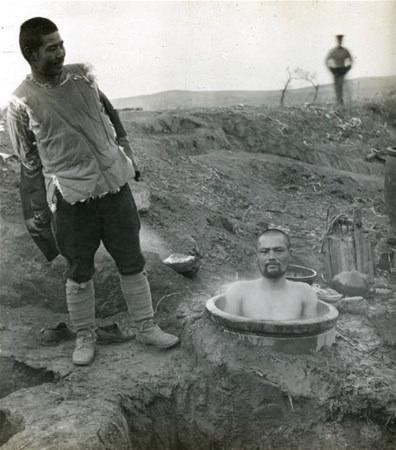 1904 Rusya -Japonya Savaşı, esnasında askerler bu şekilde yıkanıyordu.