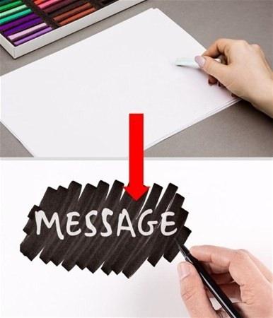 Mum kağıdı alıp, sadece üzeri boyandığında ortaya çıkan cümleler yazabilirsiniz.