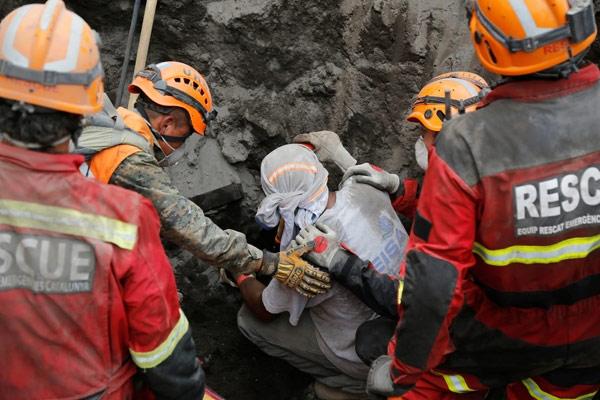 San Miguel Los Lotes köyü sakinlerinden Alejandro Esqueue, kurtarma ekipleriyle birlikte yakınlarının cansız bedenlerini aradı.