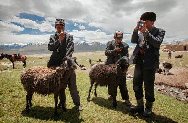 Kırgız çobanlar, değiş tokuş yoluyla aldıkları ve güneş enerjisiyle işleyen araba aküleriyle şarj ettikleri cep telefonlarını çok seviyor. İletişim konusunda işe yaramasalar bile (telefon operatörleri bu izole platoya ulaşmıyor) müzik dinlemek ve fotoğraf çekmek için kullanılıyorlar.