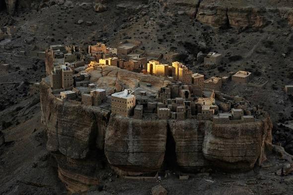 Hem Wadi Dawan’da hem de Shibam gibi güney Yemen şehirlerinde yağmacıları evlerinden uzak tutmak istediklerinden olsa gerek devasa kayaların üstüne köyler kurmuşlar.