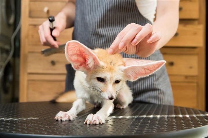 Kuzey Afrika'daki Sahara'ya özgü bir tür olan fennec tilkiye (Vulpes zerda), Pekin'in merkezindeki bir evcil hayvan mağazasında bakılıyor.