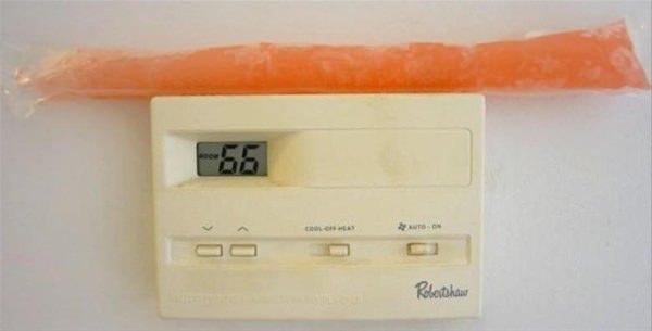 Eğer termostat bulunan bir iş yerinde çalışıyorsanız ve bulunduğunuz yer çok soğuksa termostatın üzerine koyduğunuz soğuk bir nesne termostatı kandırmanızı ve odanın ısısının yükselmesini sağlayabilir.