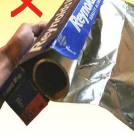 Alüminyum folyo paketlerinin çoğunun kenarında delikli yerler vardır. Paketin her yerini yırtmadan o delikli yeri içe ittirdiğiniz takdirde, folyoyu farklı bir kullanım aparatına ihtiyaç duymadan kullanabilirsiniz.