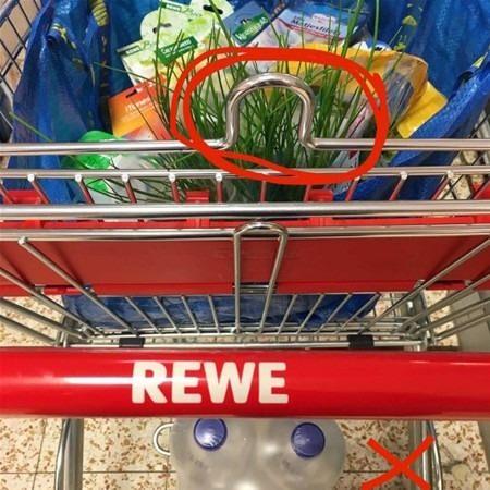 Alışveriş torbalarınızı alışveriş arabasındaki askılara asın.Alışveriş arabalarında küçük askılar vardır, poşetleri buralara asarsanız aldığınız ürünler birbirine karışmadan düzgün duracak ve arabaya daha fazla ürün yerleştirebileceksiniz.