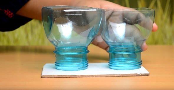 Az önce kestiğimiz pet şişeleri kartona bu şekilde koyuyoruz.