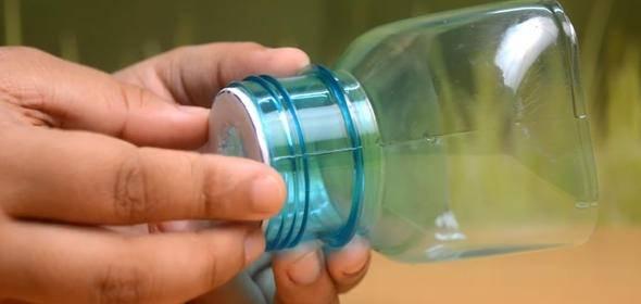 Bu şekilde pet şişenin ağzına yapıştırıyoruz.