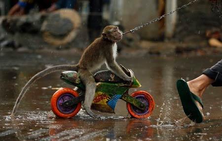 Motorcu maymunlar hayret ettiriyor! VİDEO / GALERİ
