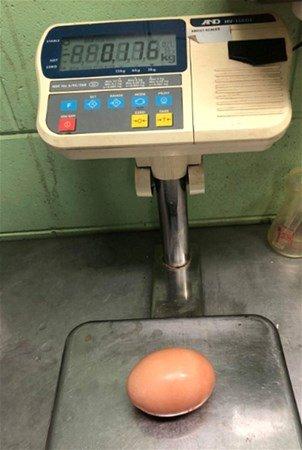 Stockman, bir insanın avucunu tamamen kaplayan, normal boyutunun 3 katı olan bu yumurtayı sosyal medyada paylaştı.176 gram ağırlığındaki yumurta daha çok bir kaz yumurtasını andırıyordu.