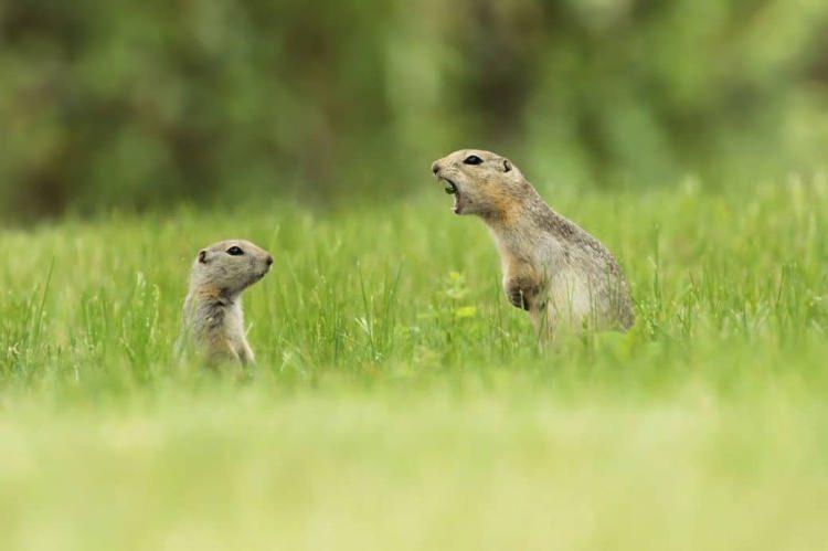 Annelik her yerde aynı. Anne tarla sincabı küçük yavrusuna seslenirken...