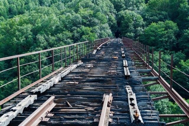 Kholmsk, Sakhalin Bölgesi'nde bir terk edilmiş demiryolu köprüsü.