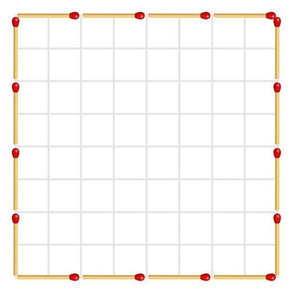 Resime 15 kibrit çöpü ekleyerek birbirine tamamen eşit 4 alan oluşturun.