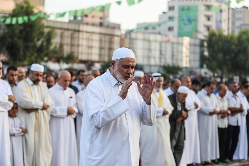 Gazzeliler, Kurban Bayramı namazını Es-Saraya Meydanı'nda kıldı. Çocuklarıyla birlikte meydanı dolduran Gazzeliler, Kurban bayramı namazına saf tuttu. Namazı, Hamas'ın Siyasi Büro Başkanı İsmail Heniyye kıldırdı.