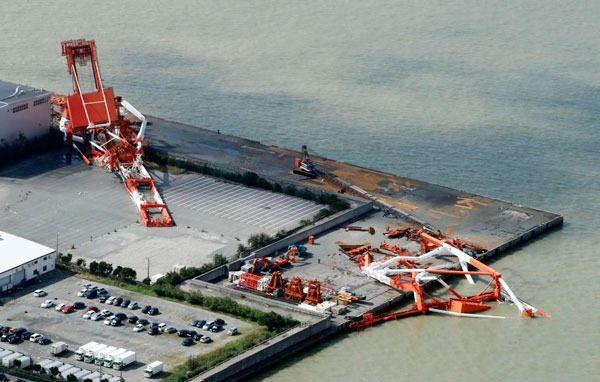 Nishinomiya limanında vinçler devrildi.